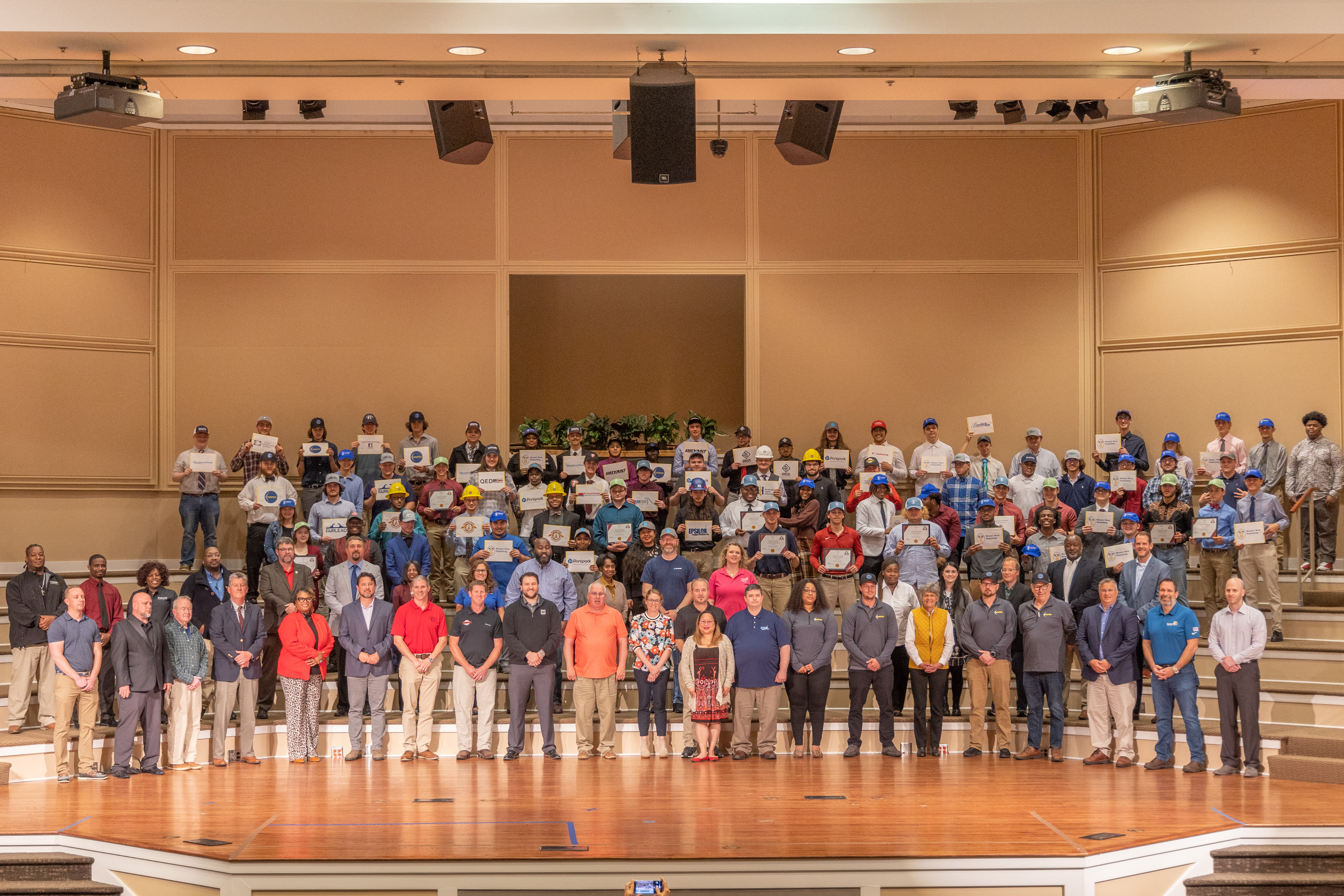 Patterned after the NCAA’s National Signing Day for athletes who are committing to play sports in college, this event celebrates students entering into the automotive, construction, advanced manufacturing, or technology/cybersecurity workforce directly after high school. Through their specialized career and technical training at NHREC, these graduating seniors have the opportunity to gain full-time employment with Hampton Roads employers in high- demand, high-wage, entry-level positions earning on average between $14 to $23 per hour plus full employer benefits. This is why the program has been proudly coined as the “Good Life” Solution Program. Last year 15 regional employers hired 51 students, and in the previous four years of the program’s existence, the one year following graduation retention rate for students that complete the Good Life Solution Program is 81%. This is quite a high percentage when compared to the national average retention rate of 29.9% for individuals entering the workforce within all fields between the ages of 18-24.