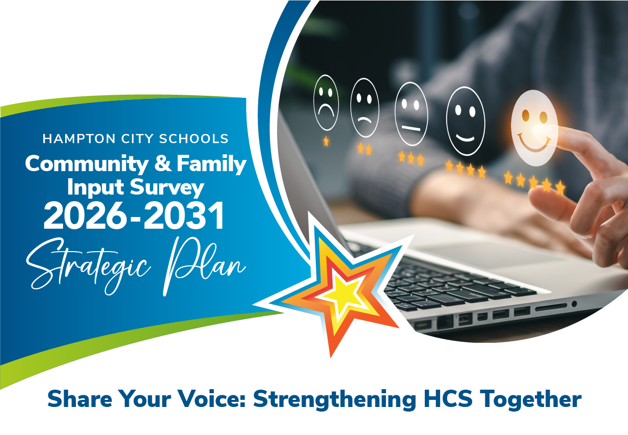 Hampton City Schools (HCS) is developing its 2026–2031 Strategic Plan, and we are seeking input from our families and community to help shape the future of our division. (Similar surveys are being administered to students, teachers, school administrators, and HCS staff members.)