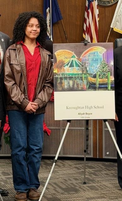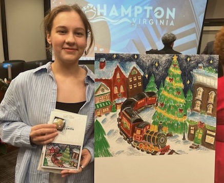 Each year, the Hampton mayor’s office sponsors a holiday card contest for art students at the city’s four high schools. The tradition began more than 19 years ago under Mayor Ross Kearney II and has been carried on by every mayor since. This year's theme is Holidays in Hampton. The mayor invites students to interpret the theme using any two-dimensional medium suitable for reproduction on a holiday card. At least one piece from each high school is chosen, and the finished cards are sent to local business leaders and other officials to share holiday greetings from the mayor and city council. The program is a meaningful way to highlight the talents of Hampton’s young artists and the educators who support them.