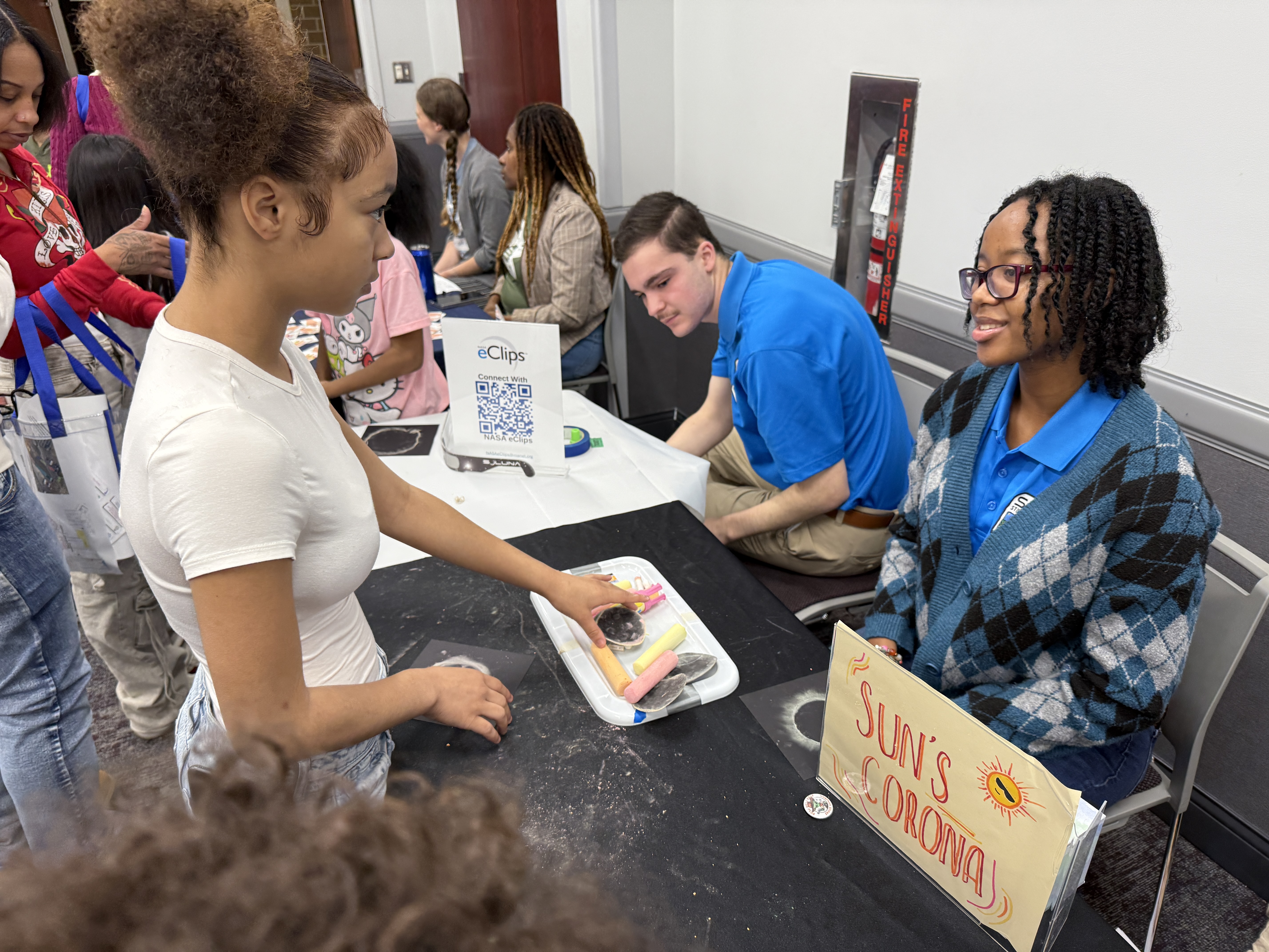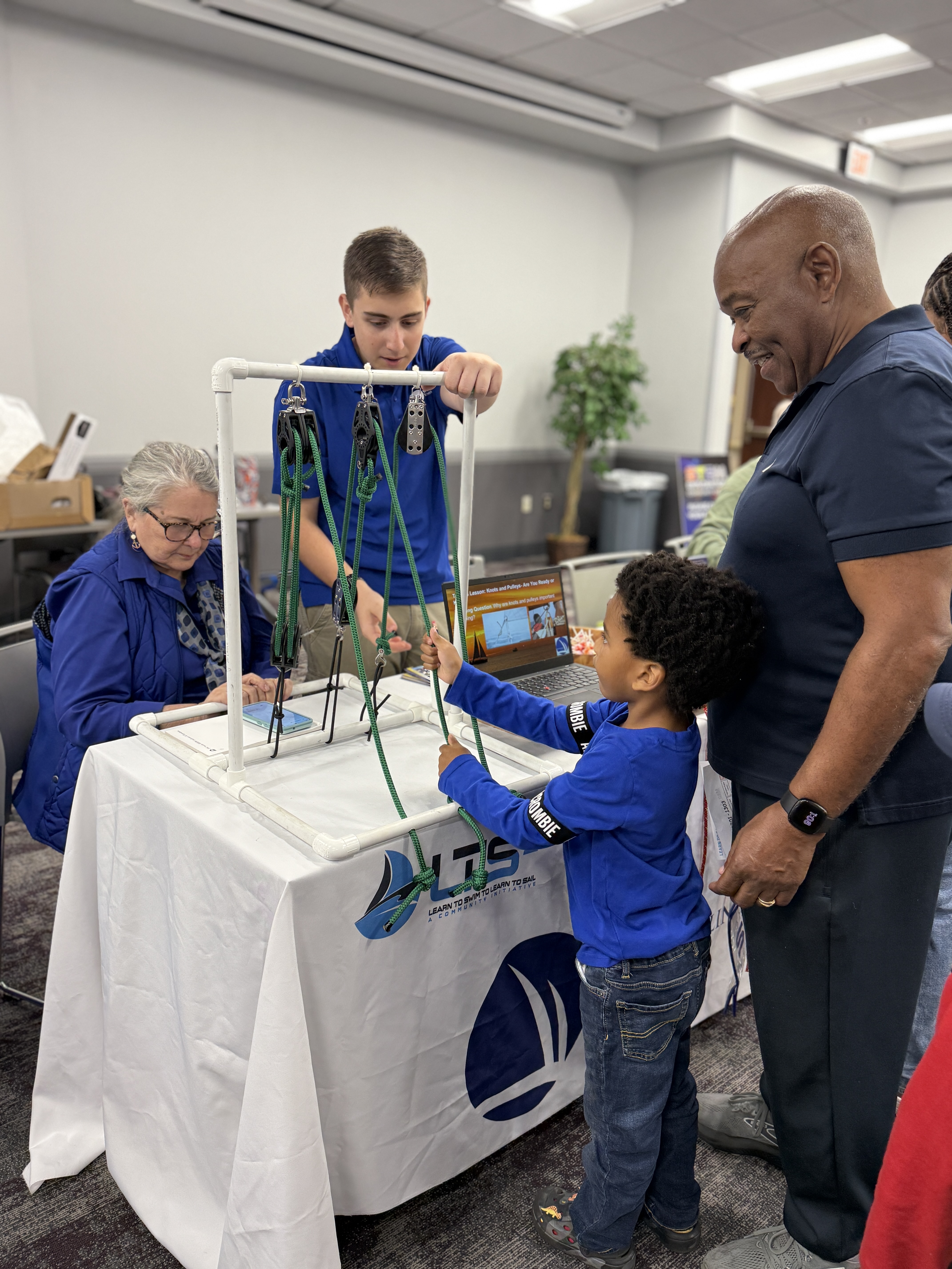 In addition, HCS staff member Joan Harper-Neely and students Suri Williams and Chanbotrey Soum,who serve as National Institute of Aerospace STEM student ambassador interns for 2025–2026, engaged visitors in discovering the mysteries of the sun’s corona and auroras at the NIA exhibit. Chase Young engaged participants with the STEM connections found in sailing at the Youth Sailing Virginia exhibit.