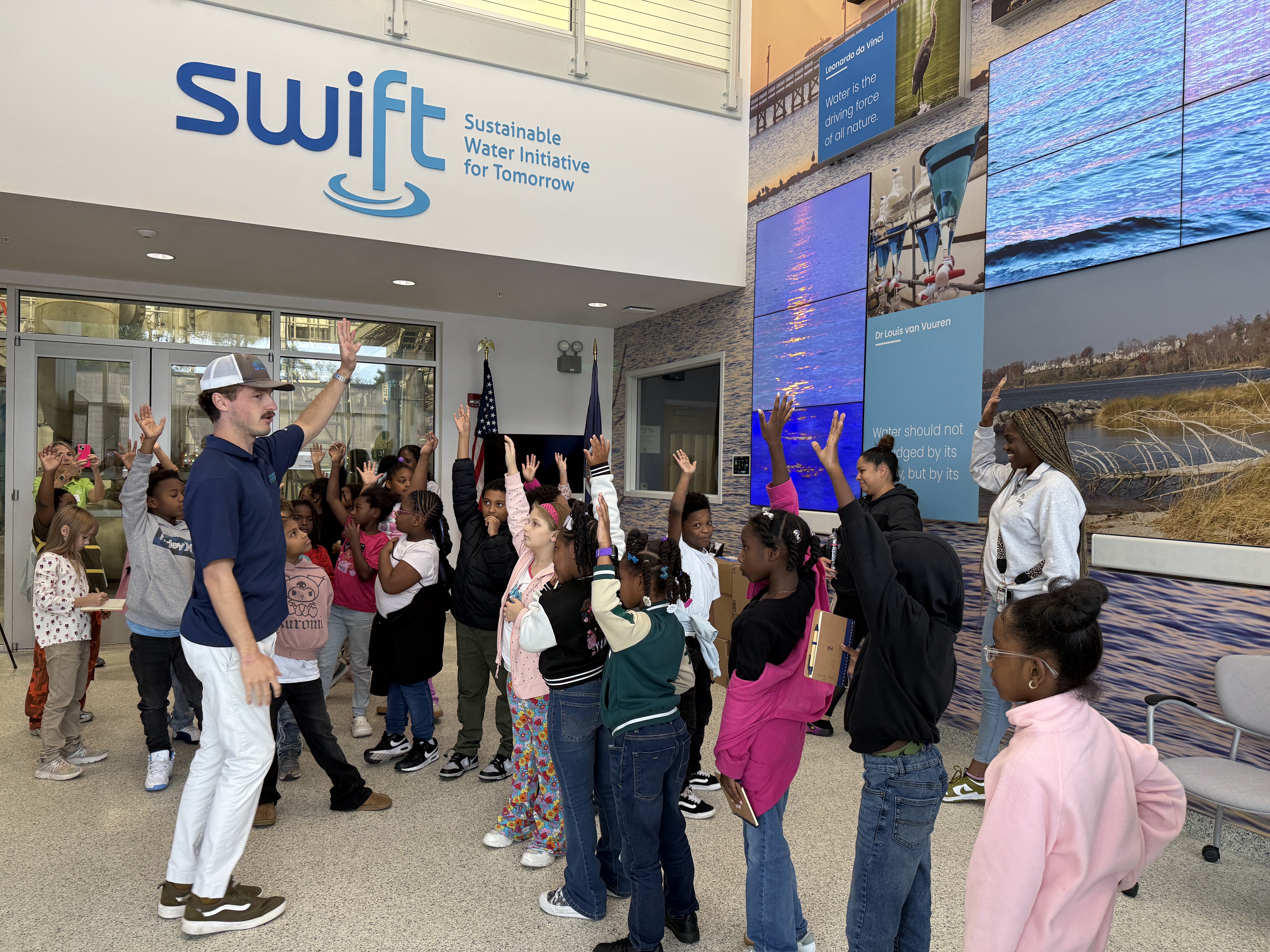 The SWIFT field trips took place on October 15 and 16, just in time for the U.S. Water Alliance’s national “Imagine A Day Without Water” celebration on October 16—a national campaign that reminds all Americans of the essential role water plays in our lives. Katherine Hafner, environmental reporter for WHRO, joined the students and teachers at SWIFT October 16. Her story can be found here.