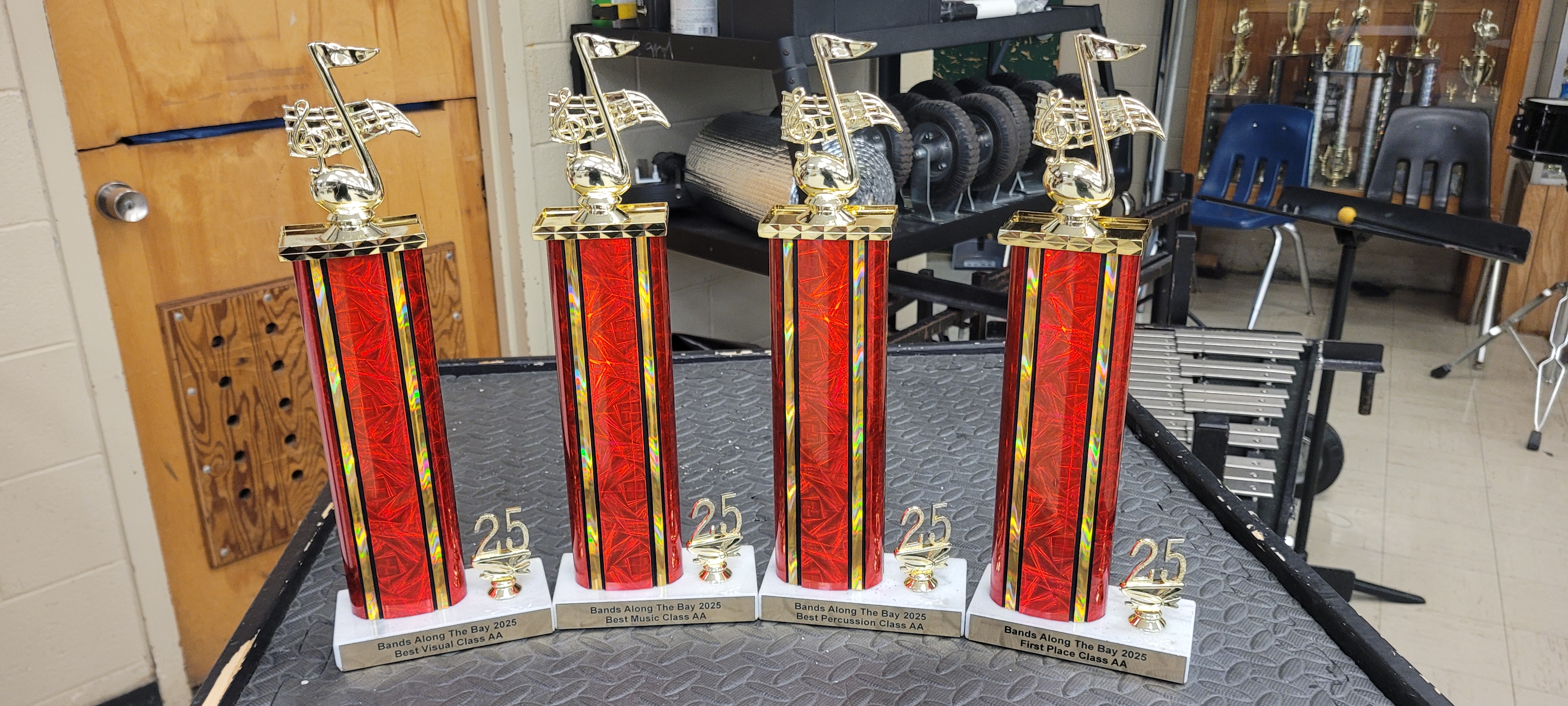 Continuing their winning streak, the MMB also excelled at the “Bands Along the Bay” Marching Band Competition, competing in Class AA and earning: