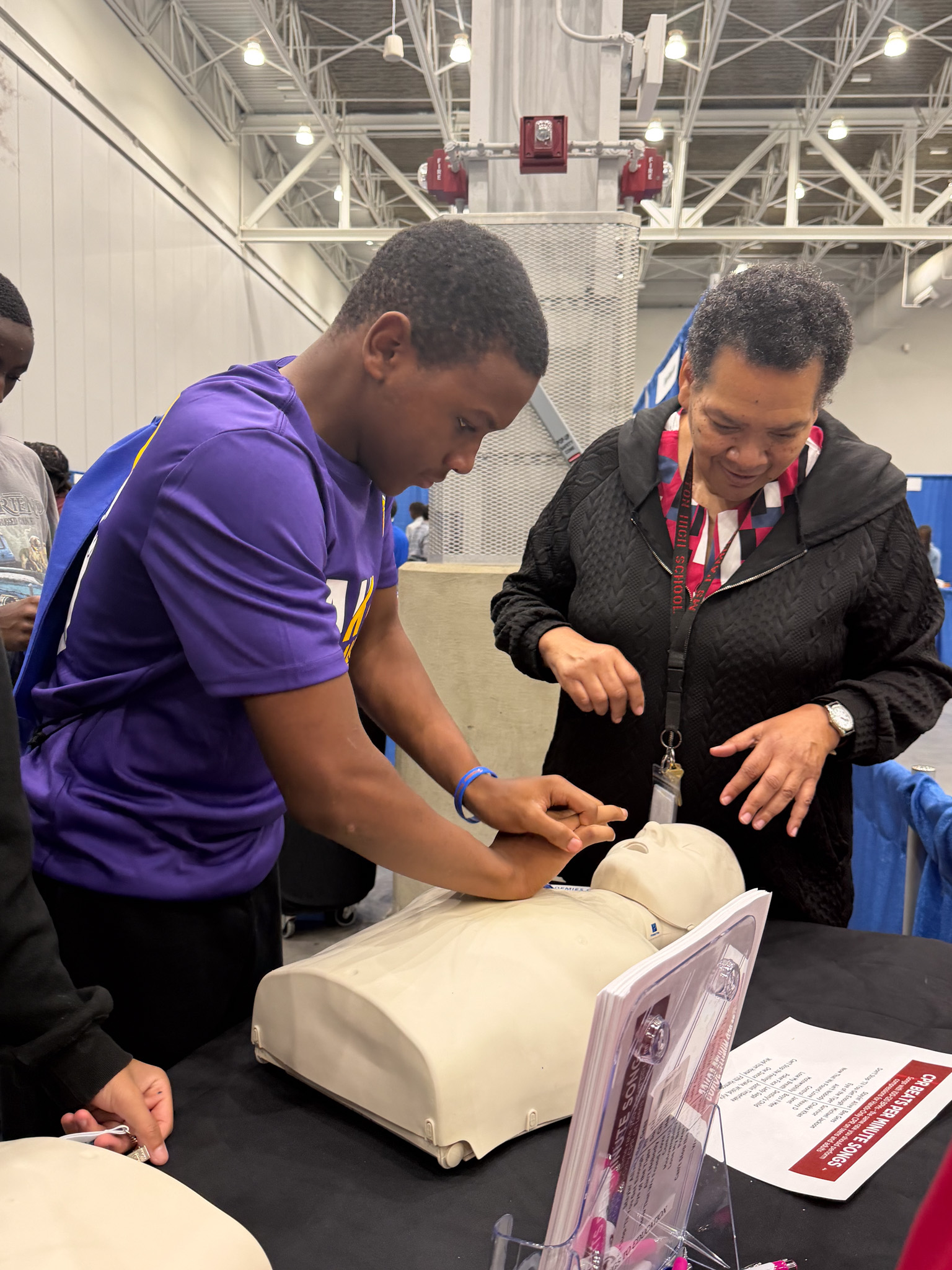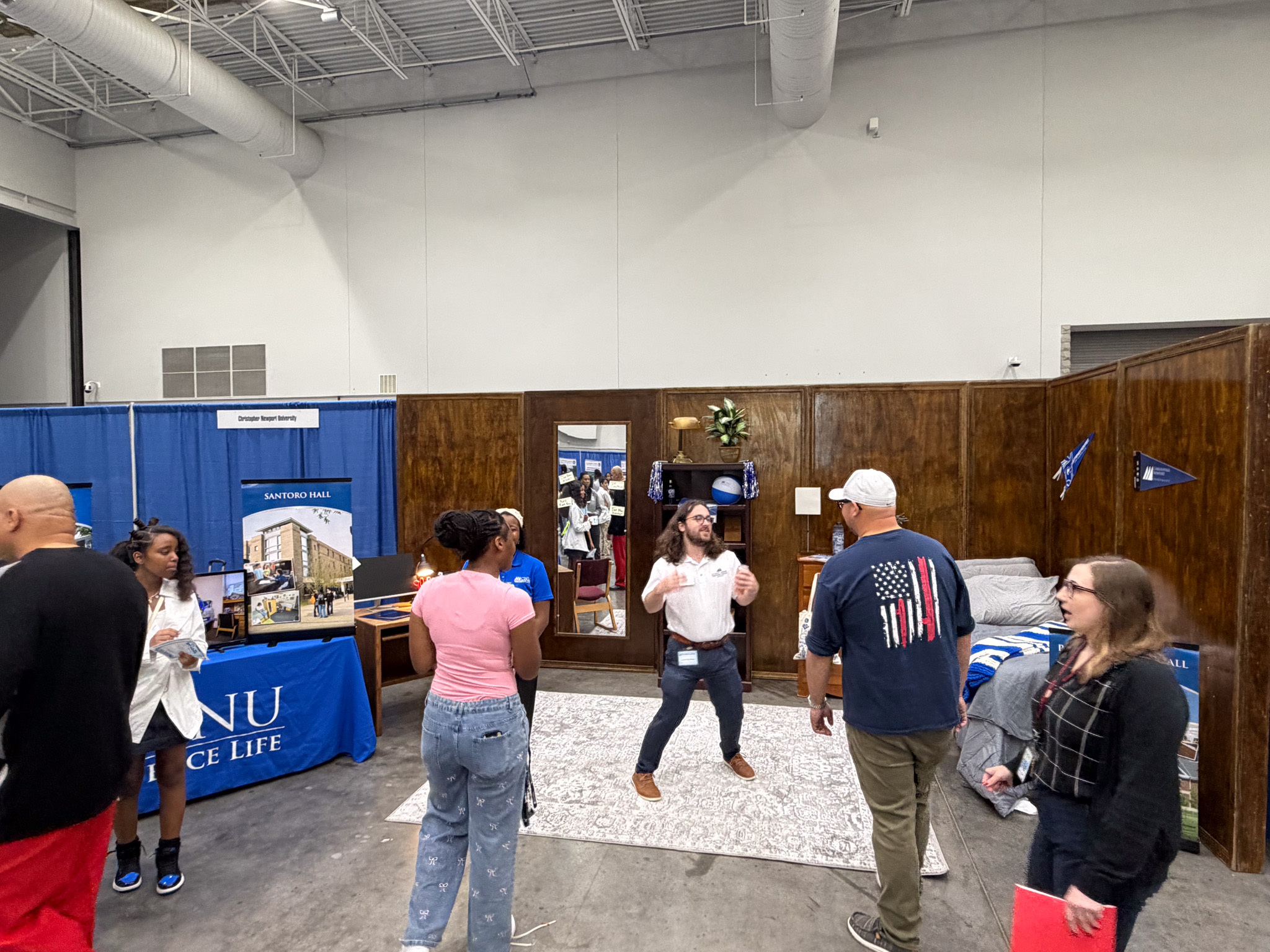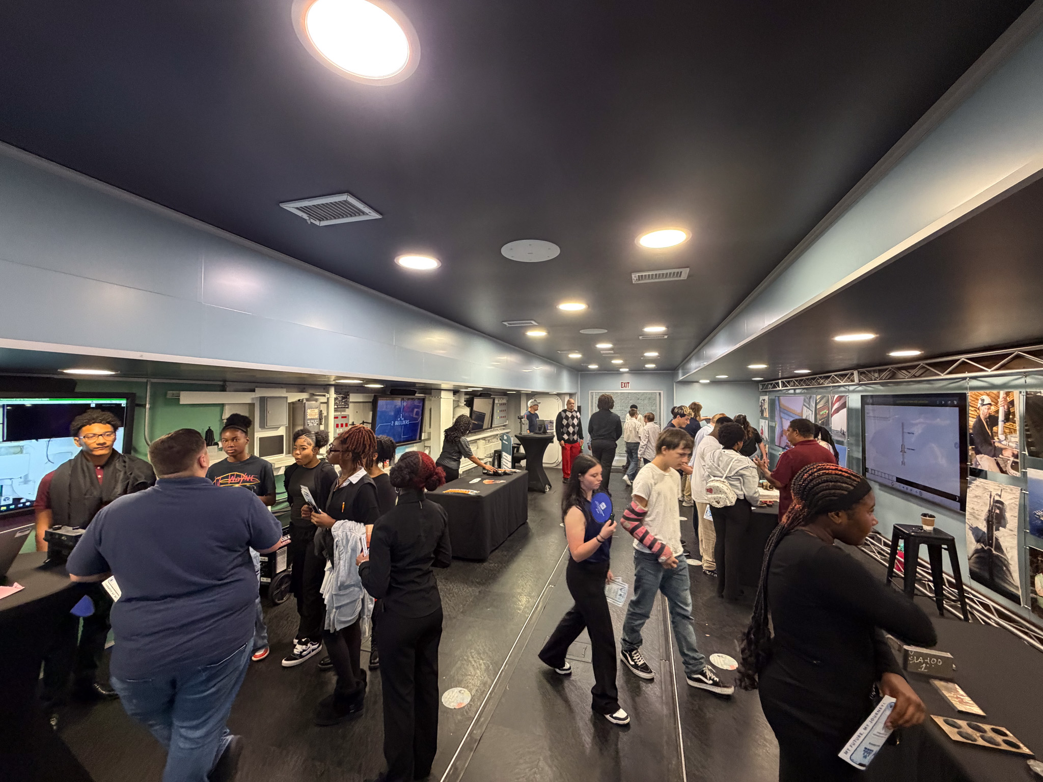 Following the simulations, students visited College Row, which featured over 30 postsecondary partners. Our division’s education partner, Christopher Newport University, transformed their space into a realistic dorm room experience to engage and connect with young people. This innovative approach gave students a tangible glimpse into college life and sparked meaningful conversations about postsecondary readiness.