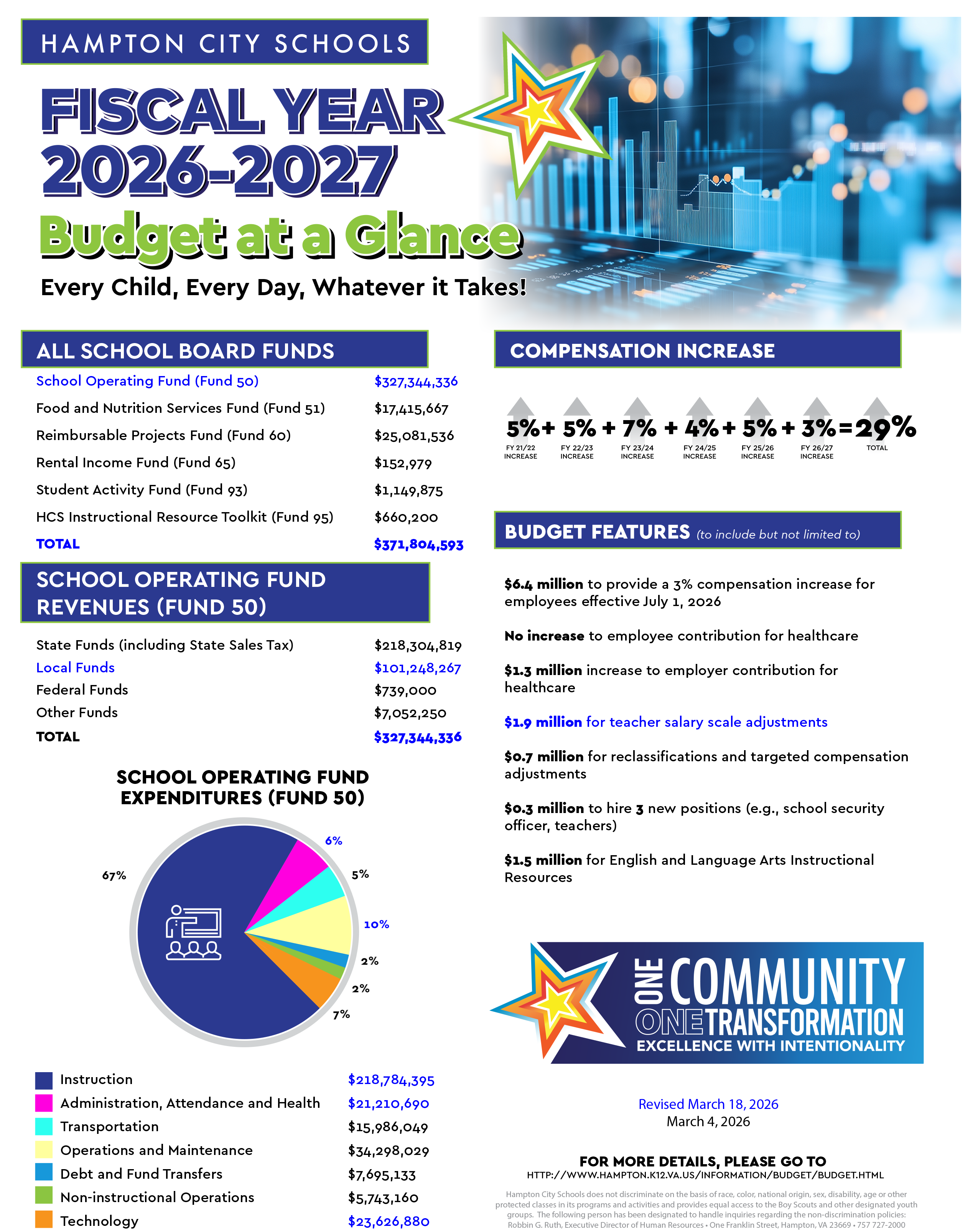 The School Board’s vote on the Superintendent’s Recommended FY 2026–2027 Budget is scheduled for March 25. Following School Board approval, the budget will be forwarded to the City for consideration and final approval.