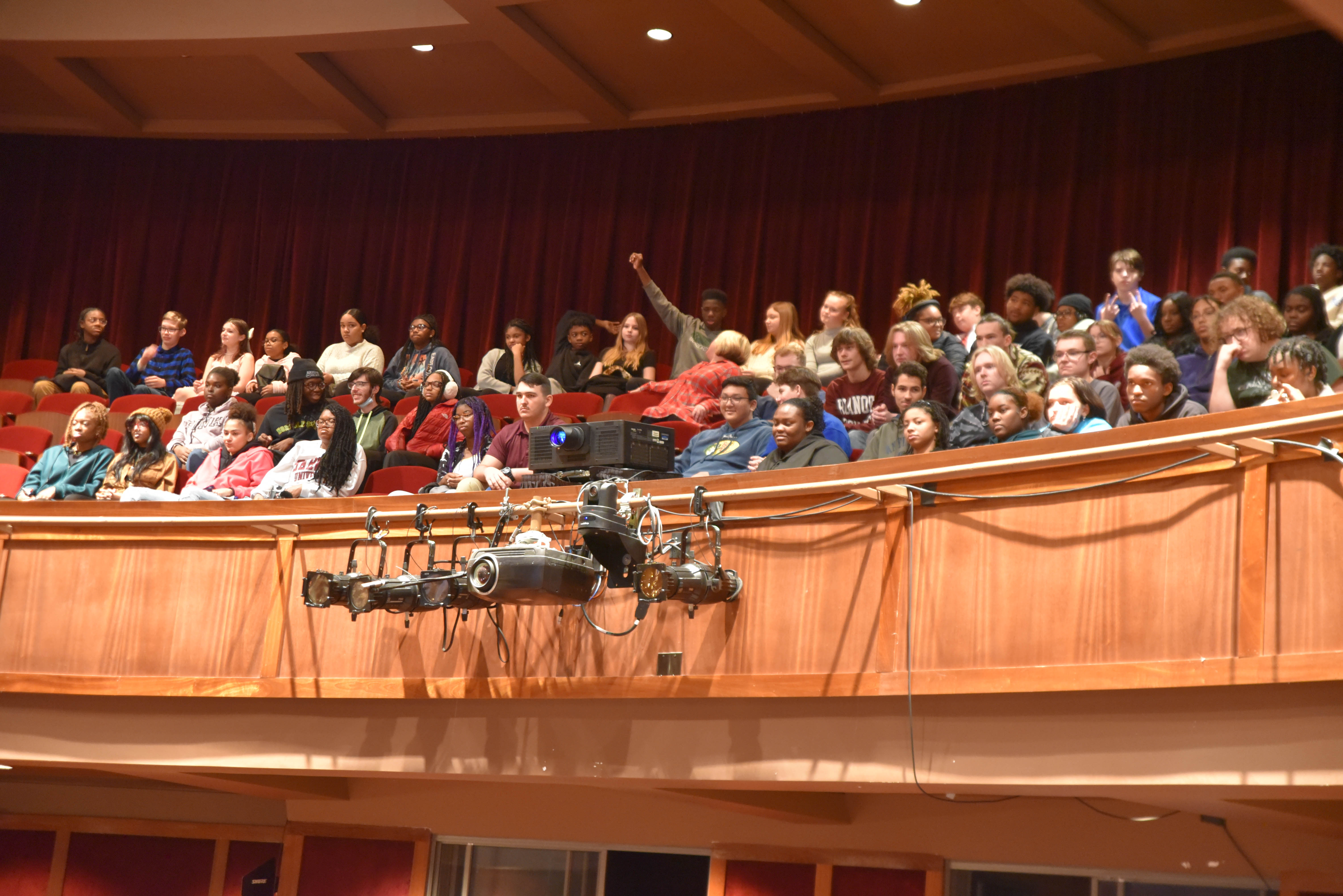 Students listened to the performance of the professional instrumentalists and vocalists, spoke with the musicians, and had their questions answered about the many career opportunities, musical, technology, and the many others, available in the military.