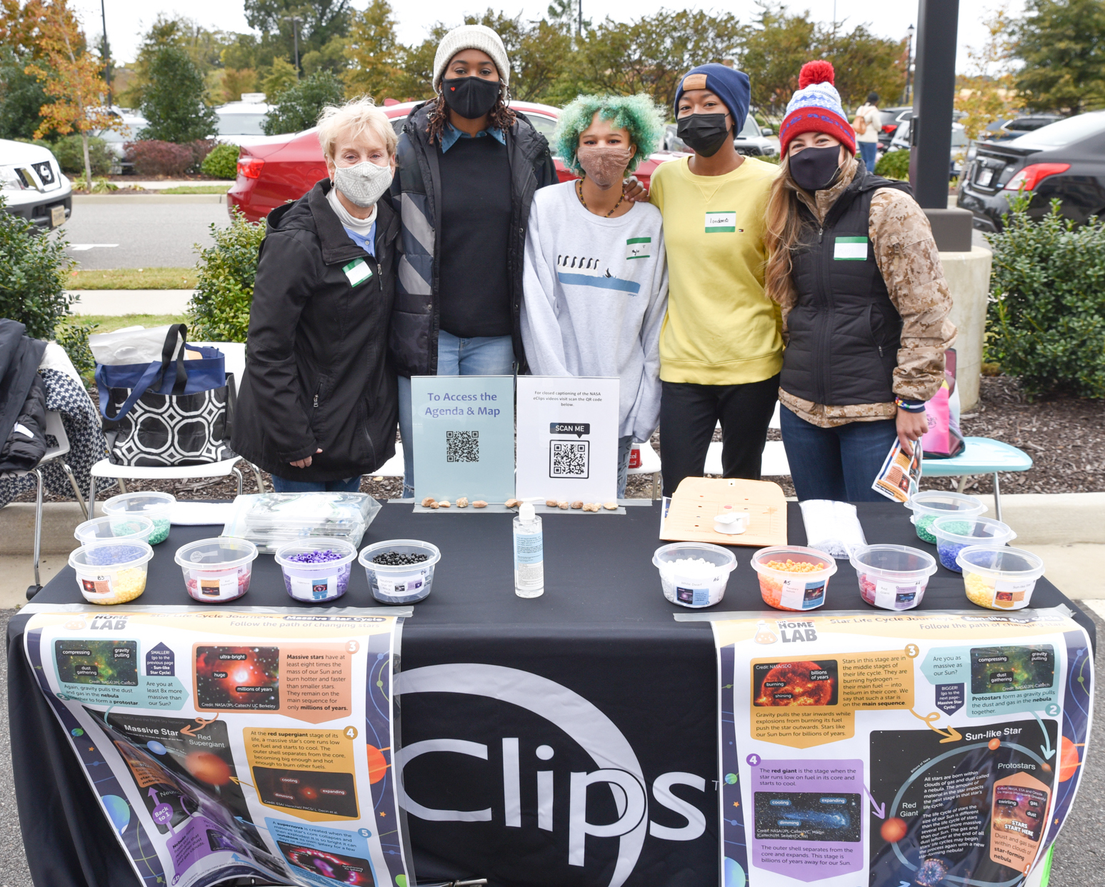 Kecoughtan High School Academy of Teaching, Education, and Learning students London Viney and Alexis DeSue provided outreach at the National Institute of Aerospace’s exhibit. Working with NASA interns and NASA eClips educators, they assisted students in building star life cycle bracelets that illustrate the journeys of both sun-like and massive stars. The girls took advantage of networking opportunities, making connections not only with NASA interns, but also with NASA’s Langley Research Center chief technologist Julie Williams-Byrd.